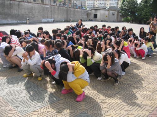 2012年4月26日下午随着第二节课下课铃声响起,全校师生立即进入逃生演练活动。四楼办公室全体教师紧急向楼下疏散,各班级学生在授课教师带领下紧张、有序的向楼下安全场地跑去,整个演练活动历时一分半钟。杨明锐副校长最后宣布演习成功,并就本次演习做总结发言,希望同学们警钟长鸣,珍惜生命,学好安全知识,提高安全认识,做好安全防范,提高自救能力。