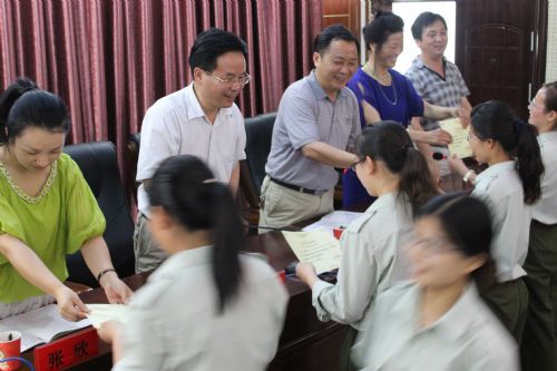 区委组织部副部长吴康文、区教育局副局长陈绪文、区教师进修学校王启霞校长等相关领导向学员颁发荣誉证书