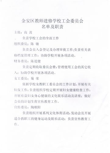 金安区教师进修学校工会委员会名单及职责