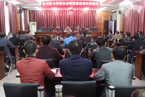 2016年10月27日上午,金安区2016年小学校长任职资格培训班开班典礼在金安区教师进修学校举行,区教育局副局长陈绪文、人事股股长曹宗国,区教师进修学校校长李建新、副校长高嵩以及全体参训学员参加开班典礼,开班典礼由区教育局人事股股长曹宗国主持。