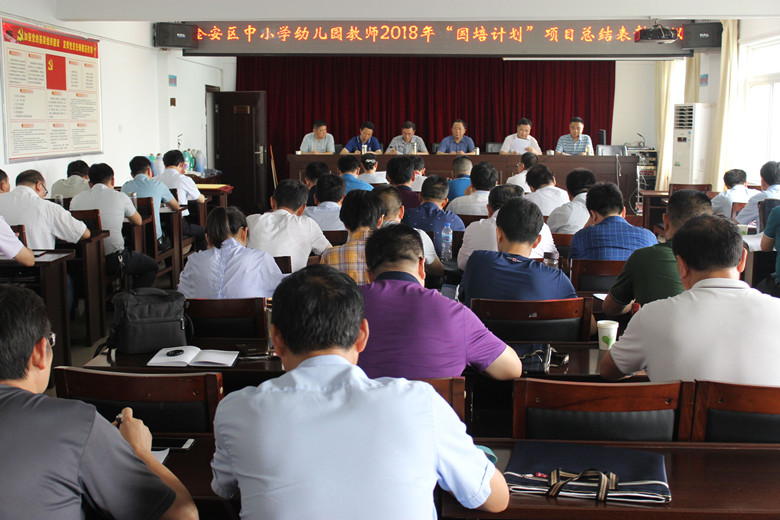 金安区教师进修学校校长李建新首先总结了金安区2018—2019年继续教育工作;金安区教育局教研室主任邬登宏宣读了《关于表彰“国培计划(2018)”“送教下乡”项目实施工作先进单位和优秀学员的决定》;马头镇中心学校作为先进单位做交流发言;金安区教师进修学校副校长高嵩详细解读了《六安市金安区2019—2020学年度中小学幼儿园教师继续教育实施方案》、《六安市金安区2019—2020学年度中小学幼儿园教师校(园)本研修实施办法》、金安区2019年 “国培计划”项目设置情况并布置了金安区2019—2020年度继续教育收费工作。