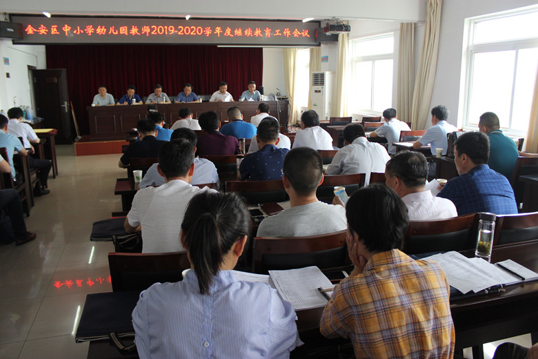2019年6月28日下午,金安区召开中小学幼儿园教师2019—2020学年度继续教育工作会,金安区委教育工委副书记、区教育局党组副书记、副局长陈绪文,区教育局人事科、教研室、电教馆负责人,金安区教师进修学校负责人,各直属学校、中心学校继续教育分管负责人、经办人参加会议,会议由金安区教育局人事股股长曹宗国主持。