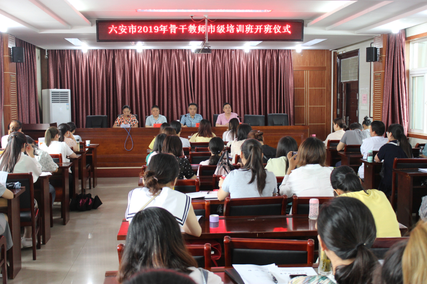 2019年7月5日下午,六安市2019年学前教育、小学语文骨干教师市级培训班开班仪式在金安区教师进修学校举行。金安区教师进修学校校长李建新,副校长杨明锐、高嵩以及全体学员出席开班仪式,开班仪式由金安区教师进修学校校长李建新主持。