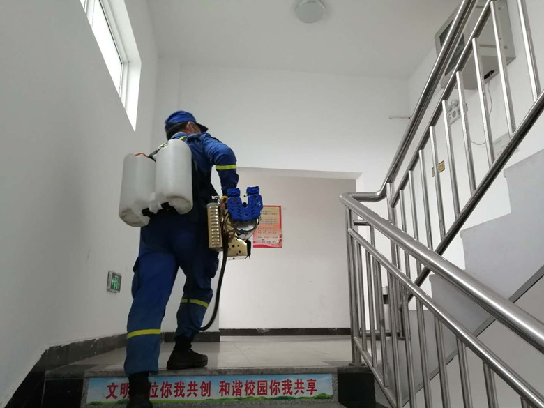 的消杀方式,对学校的教室、寝室、楼梯、走廊、垃圾桶、厕所及公共区域进行全面细致的消毒,不遗漏每一个角落,保障了消毒的效果。