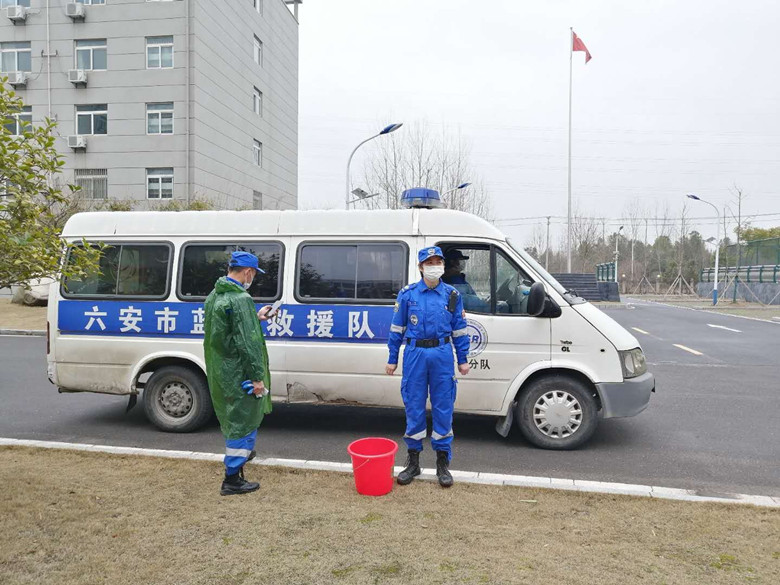 日,六安蓝天救援队对金安区教师进修学校进行消毒作业。