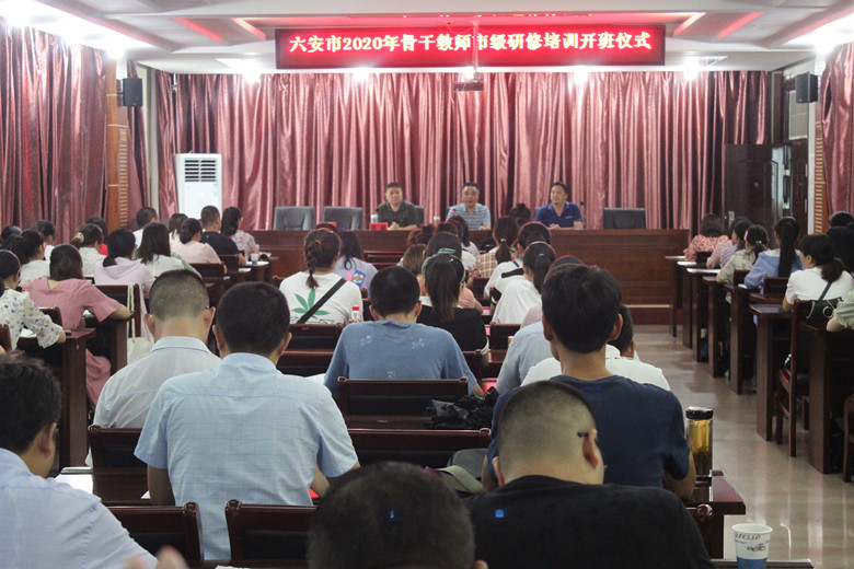 2020年7月28日,六安市2020年中小学信息技术、学前教育骨干教师市级研修培训开班仪式在金安区教师进修学校六楼报告厅举行。金安区教师进修学校校长李建新,副校长杨明锐、高嵩以及全体参训学员参加开班仪式,开班仪式由金安区教师进修学校校长李建新主持。