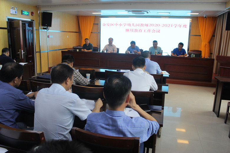 金安区教师进修学校校长李建新首先总结了金安区中小学幼儿园教师2019-2020学年度继续教育工作;区教育局师训办主任闻浩解读《六安市金安区2020—2021学年度中小学幼儿园教师继续教育实施方案》、《六安市金安区2020—2021学年度中小学幼儿园教师校(园)本研修实施方案》,并布置2020年“国培计划”项目实施工作;区教师进修学校副校长高嵩就金安区2020—2021学年度中小学幼儿园教师继续教育报名及缴费相关工作作详细说明。