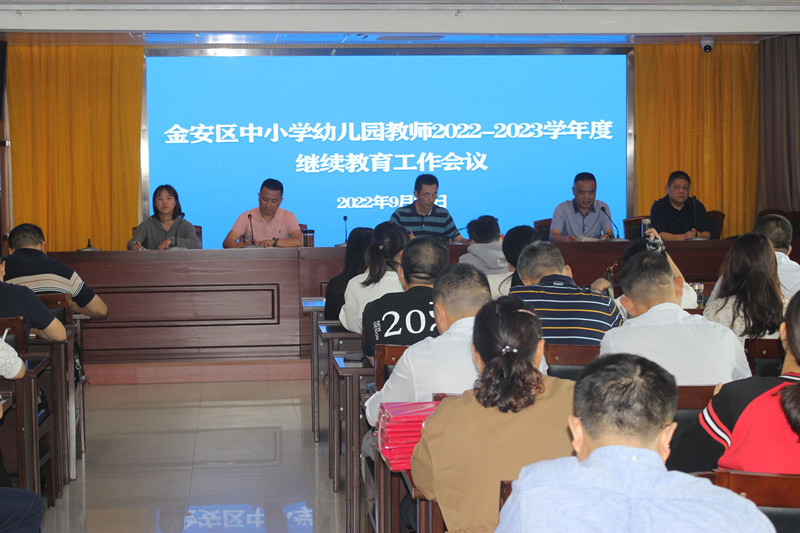 2022年9月20日,金安区中小学幼儿园教师2022-2023学年度继续教育工作会在区教育局六楼会议室召开。金安区委教育工委委员、金安区教育局副局长陆永国,区教育局人事股股长闻浩,区教育局师训办主任张莉莉,金安区教师进修学校校长李建新、副校长高嵩,各直属学校分管领导,城区教育辅导组分管领导,各中心学校校长,各单位继续教育工作经办人参加会议,会议由金安区教育局人事股股长闻浩主持。